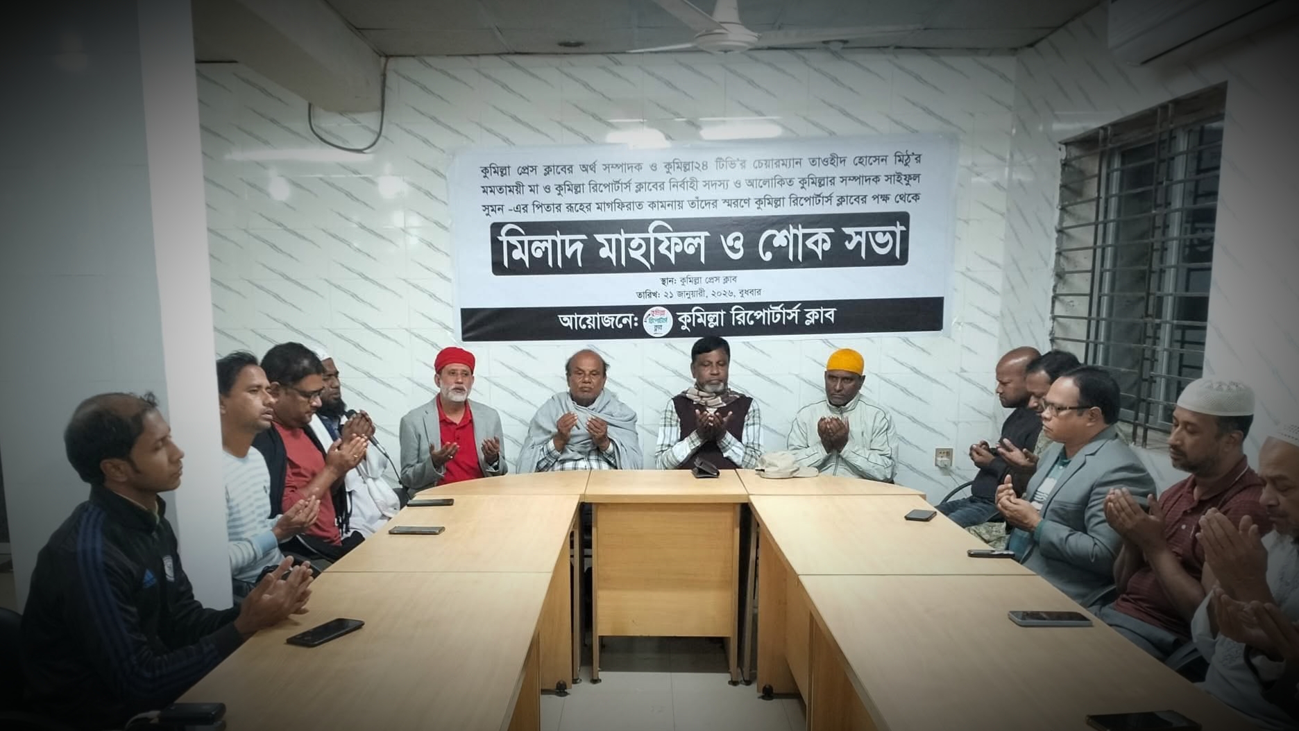 কুমিল্লা প্রেস ক্লাবের অর্থ সম্পাদক ও কুমিল্লা টোয়েন্টিফোর টিভির চেয়ারম্যান তাওহীদ হোসেন মিঠু’র মা এবং কুমিল্লা রিপোর্টার্স ক্লাবের নির্বাহী সদস্য ও আলোকিত কুমিল্লার সম্পাদক সাইফুল সুমনের পিতার রূহের মাগফিরাত কামনায় মিলাদ মাহফিল ও শোক সভা অনুষ্ঠিত হয়েছে।